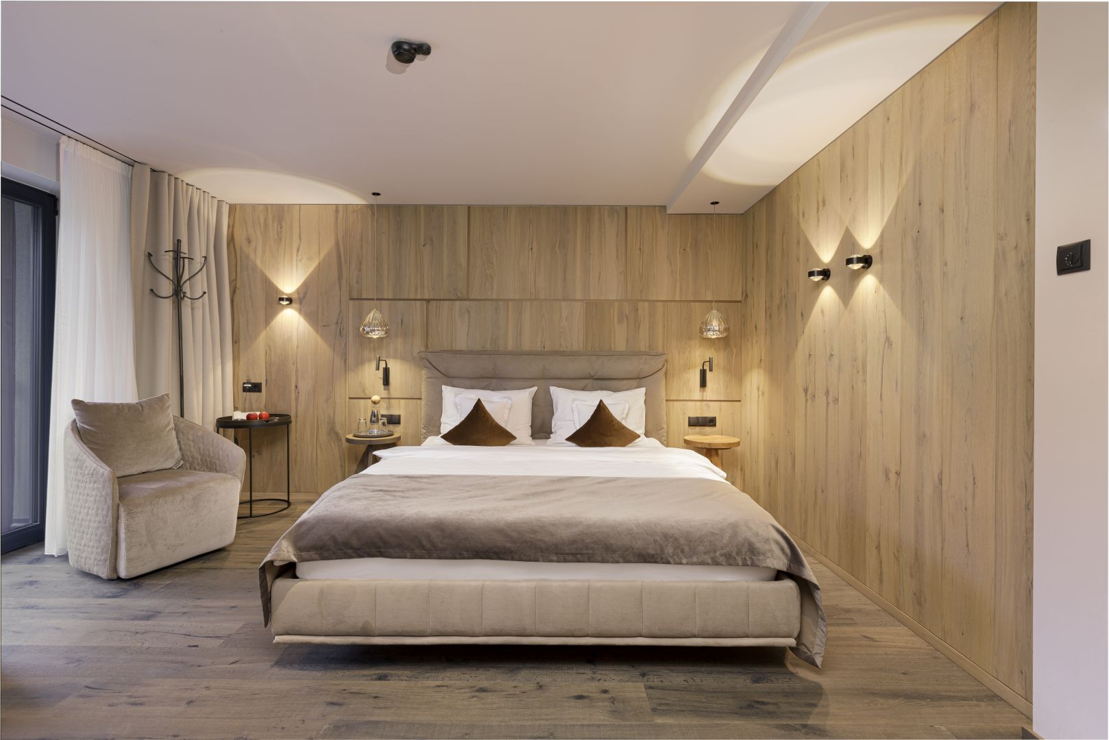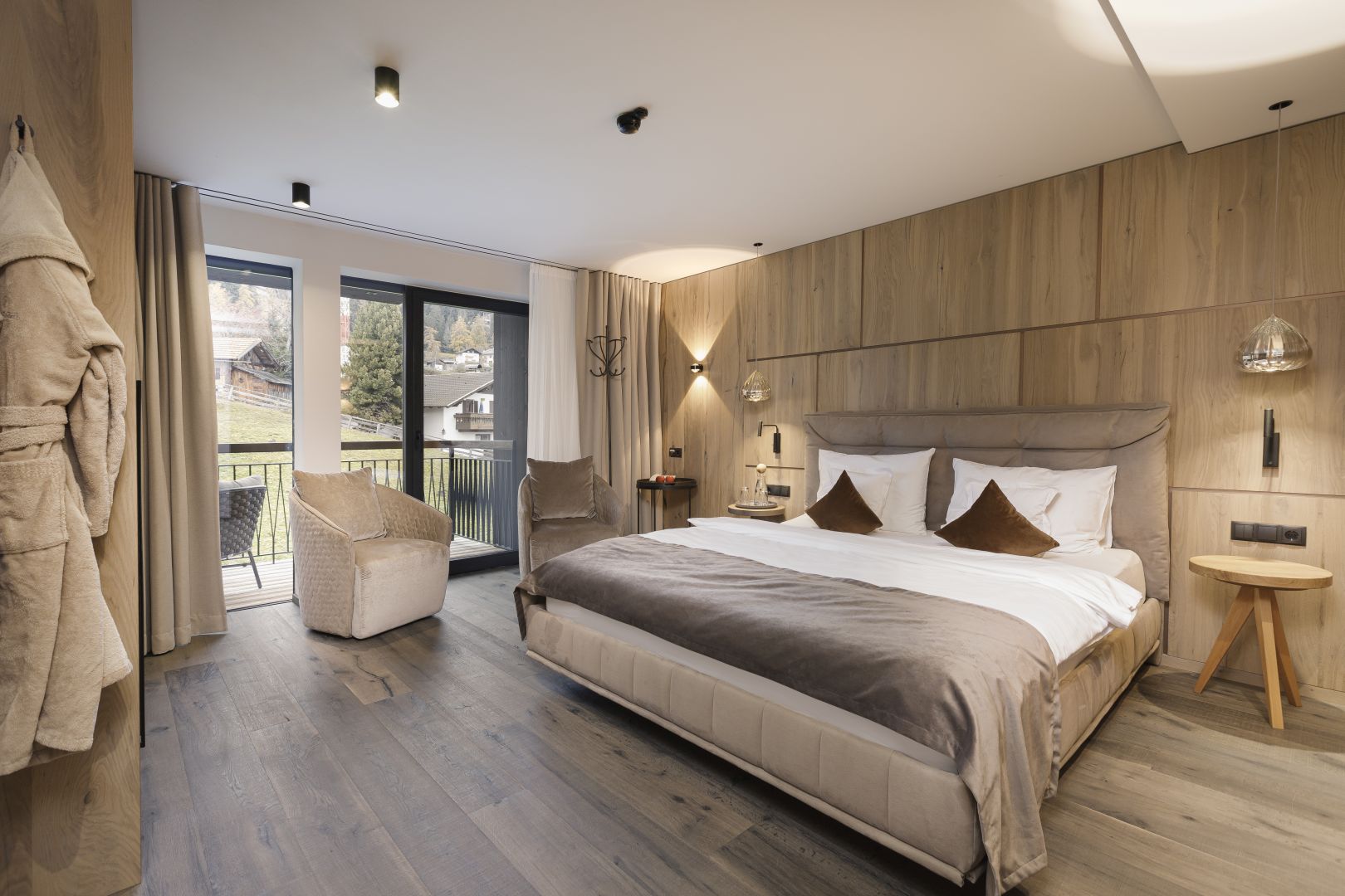 Zimmer Zirbe Romantik: ca. 35 m² inkl. 5 m² Nordbalkon, gemütlicher Wohn-Schlafbereich, Badezimmer mit Dusche, abgetrenntes WC mit Bidet, großzügiger Schrank inkl. Schuhregal, Bademantel und Hausschuhe, Safe, Sat.TV/ Radio, Telefon, Minibar mit hochwertigen und Lokalen Produkten, exklusiver Bio-Tee aus Südtirol, Nespresso- Maschine, Wifi