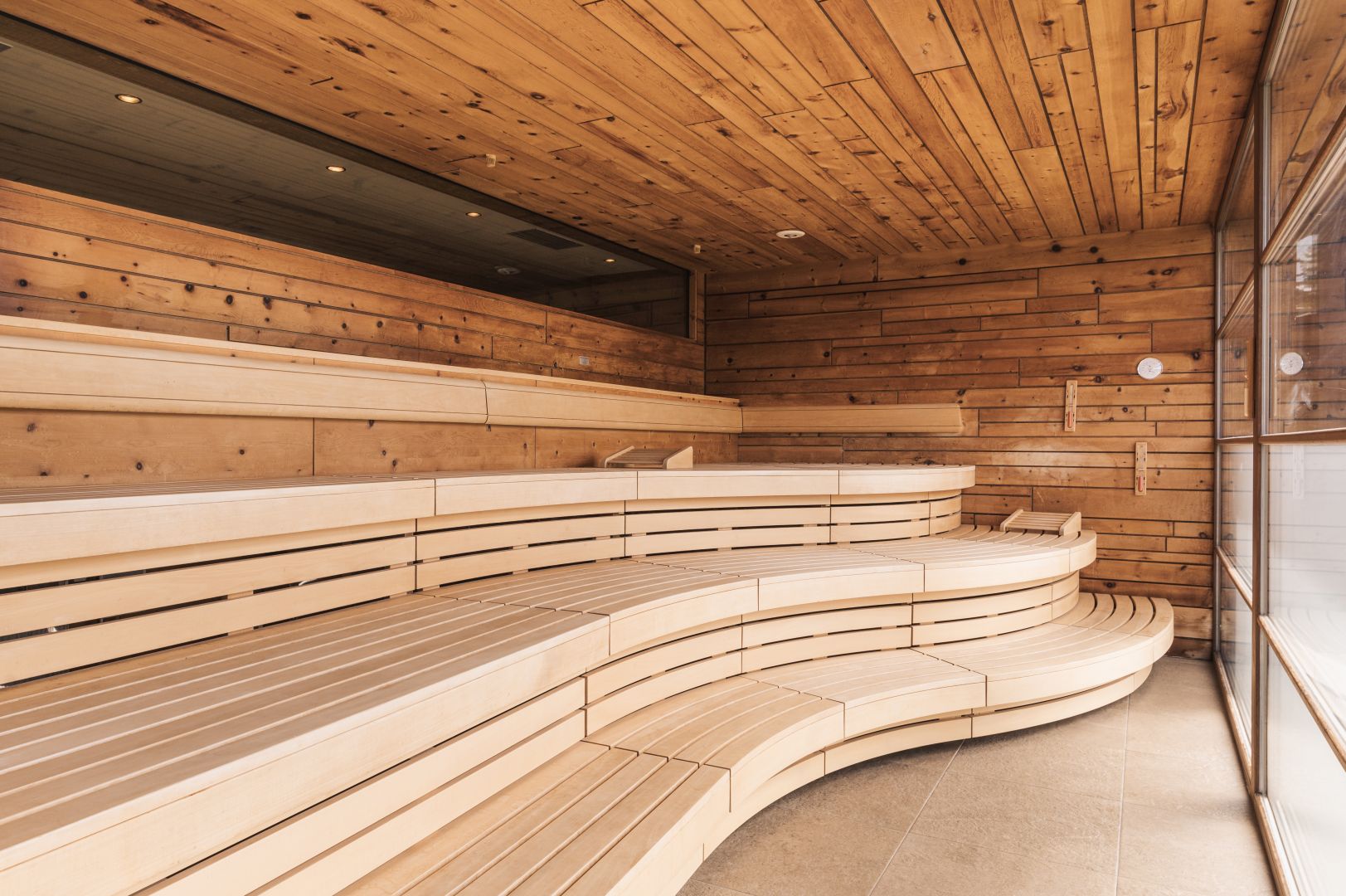 Panorama-Kräuter-Bio-Sauna 55°C, Finnische Panoramasauna 90°C, große finnische Event-Panoramasauna mit täglichen Aufgüssen, Dampfbad mit Licht- und Aromatherapie, Soledampfbad, Tauchbecken, 25m Sunset Pool im Freien, Infrarot-Kino, Eisbrunnen, Aroma-Nebeltunnel und Erlebnis- und Aromaduschen.